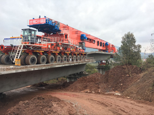 Publication Date:2017-04-17Till 17th April of 2017, the 900t Special Launching Carrier made by Tolian has sucessfully finished 100 pieces of concrete box girder placing in the project of Chang-Gan Railway Line. The equipment is highly accepted by the customer and supervisoin company because of excellent performance and high efficiency.